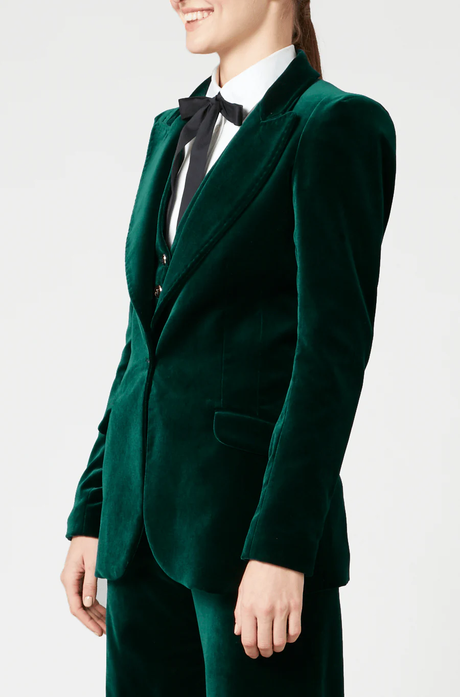 A classically cut blazer, the immaculately tailored Clove Velvet Jacket has a timeless silhouette, cinched at the waist to cut a sophisticated and striking figure when worn with the matching trousers or over a dress.