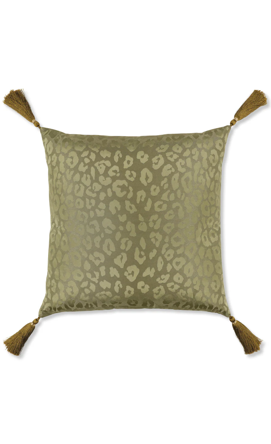 A showstopping cushion featuring richly embroidered flowers on a leopard spot jacquard, complete with sophisticated corner tassels. Coordinating Saskia leopard jacquard weave provides an opulent reverse.