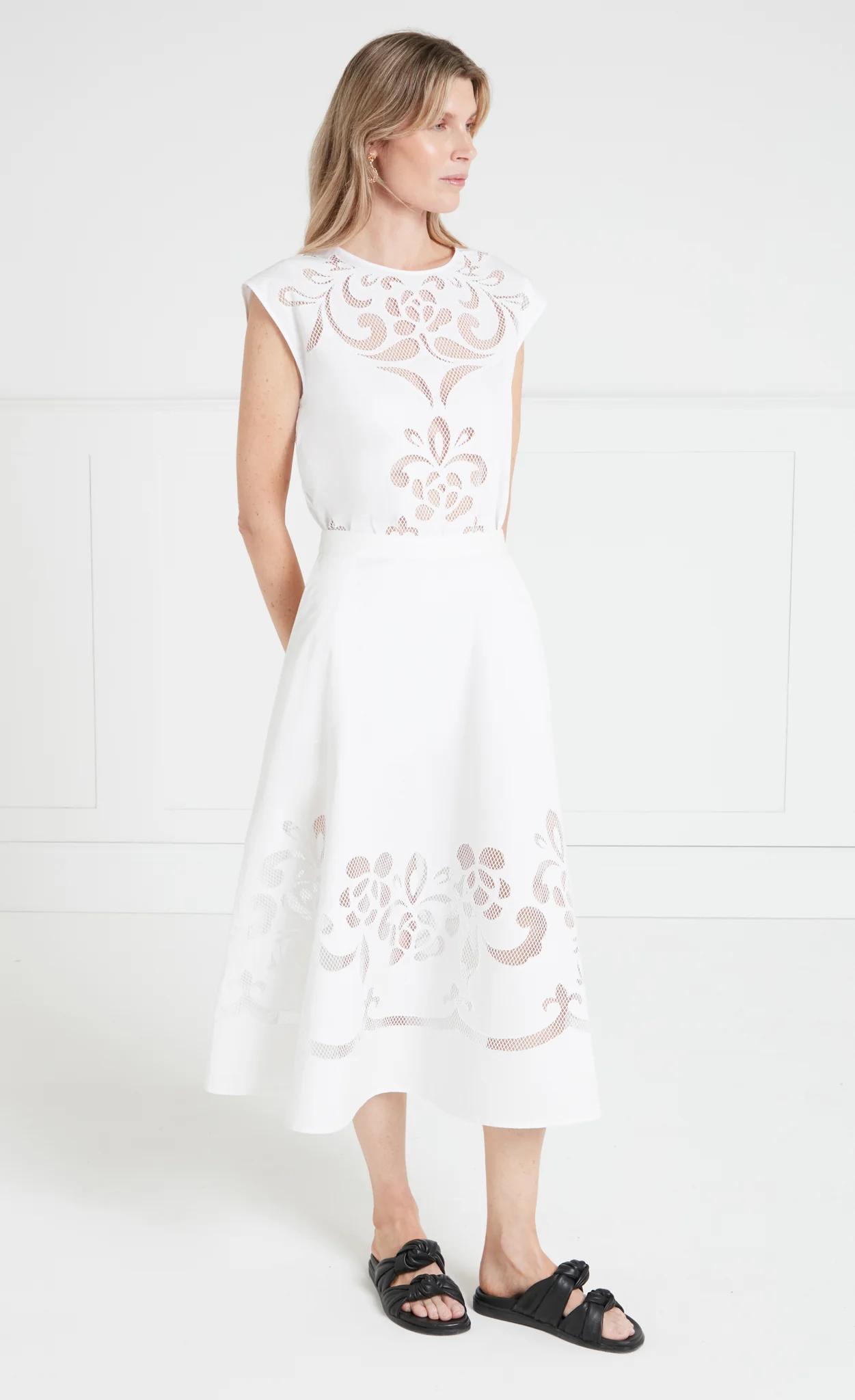Showcasing our elegant engineered broderie anglaise design, the crisp cotton Nelle skirt features a full, voluminous silhouette, creating a a shape of airy femininity. Pair it with one of the matching tops for an effortlessly polished summer look.