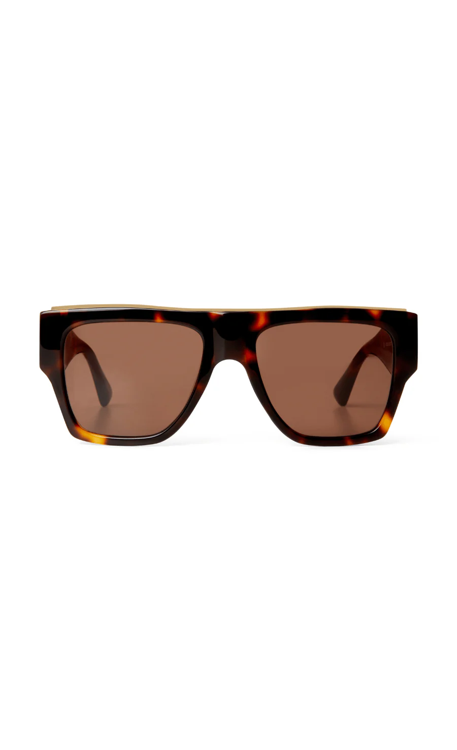 With sharp lines and oversized proportions, the Joan is a statement frame that is contoured with gold metal accents across the bridge and arms to create maximum impact.